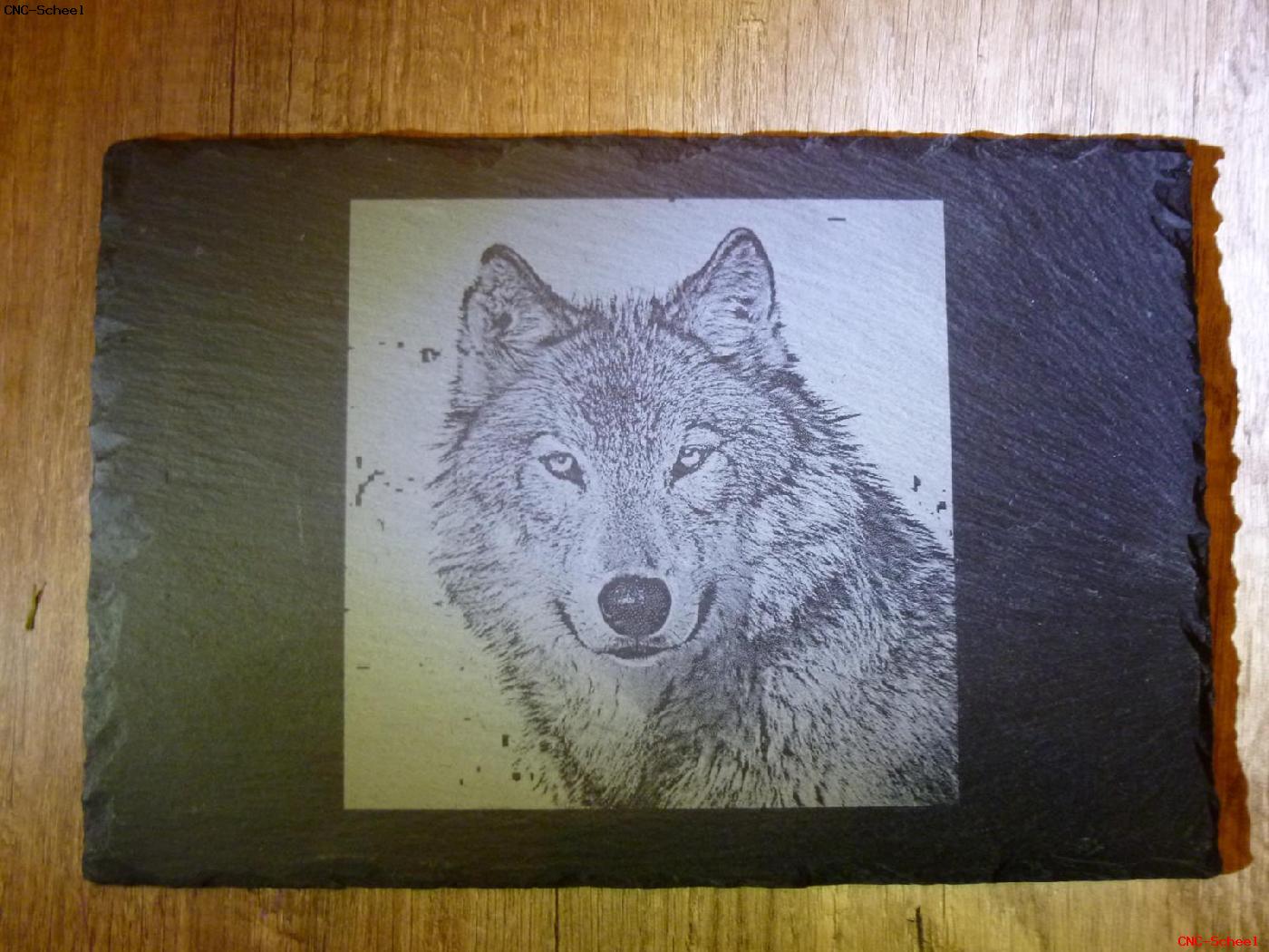 3D-Puzzle Selbstfahrlafette  Kugelschreiber mit Firmenname  Kreditkarten-Etui mit Lasergravur  Lasergravur Wolf auf Schieferplatte - ca. 20x30 cm